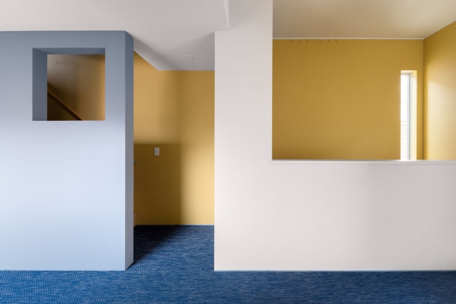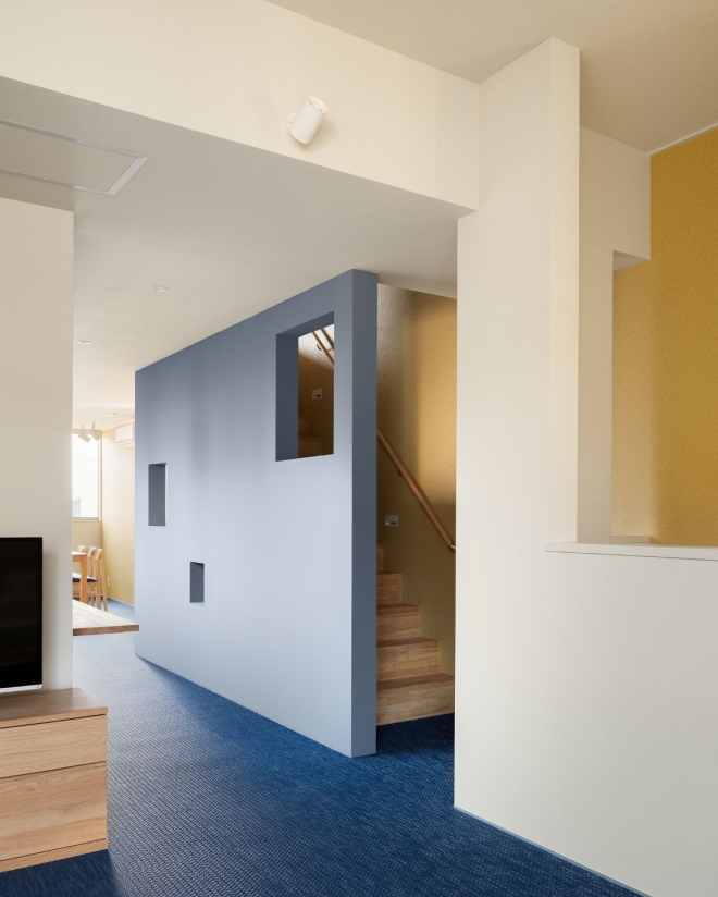 Additionally, openings in the staircase wall at the building's center allow natural light streaming through the courtyard-facing windows to change angle throughout the day.